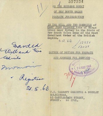 A grant of probate is the authority given by the Supreme Court of NSW to the executor(s) to deal with a deceased person's estate. Probate packets hold the last will and testament, codicils (additions or revocations to the will) or letters of administration.