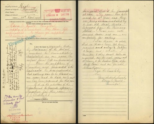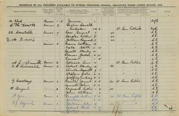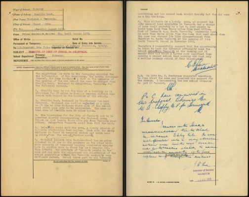 There are similarities between all of the school files through content and purpose. They reflect their times. The files cover both wars but particularly reflect the many impacts of World War 1. Women resign or are terminated when they marry as married women were barred from public sector employment. Schools very strongly reflect the growth or decline of towns.