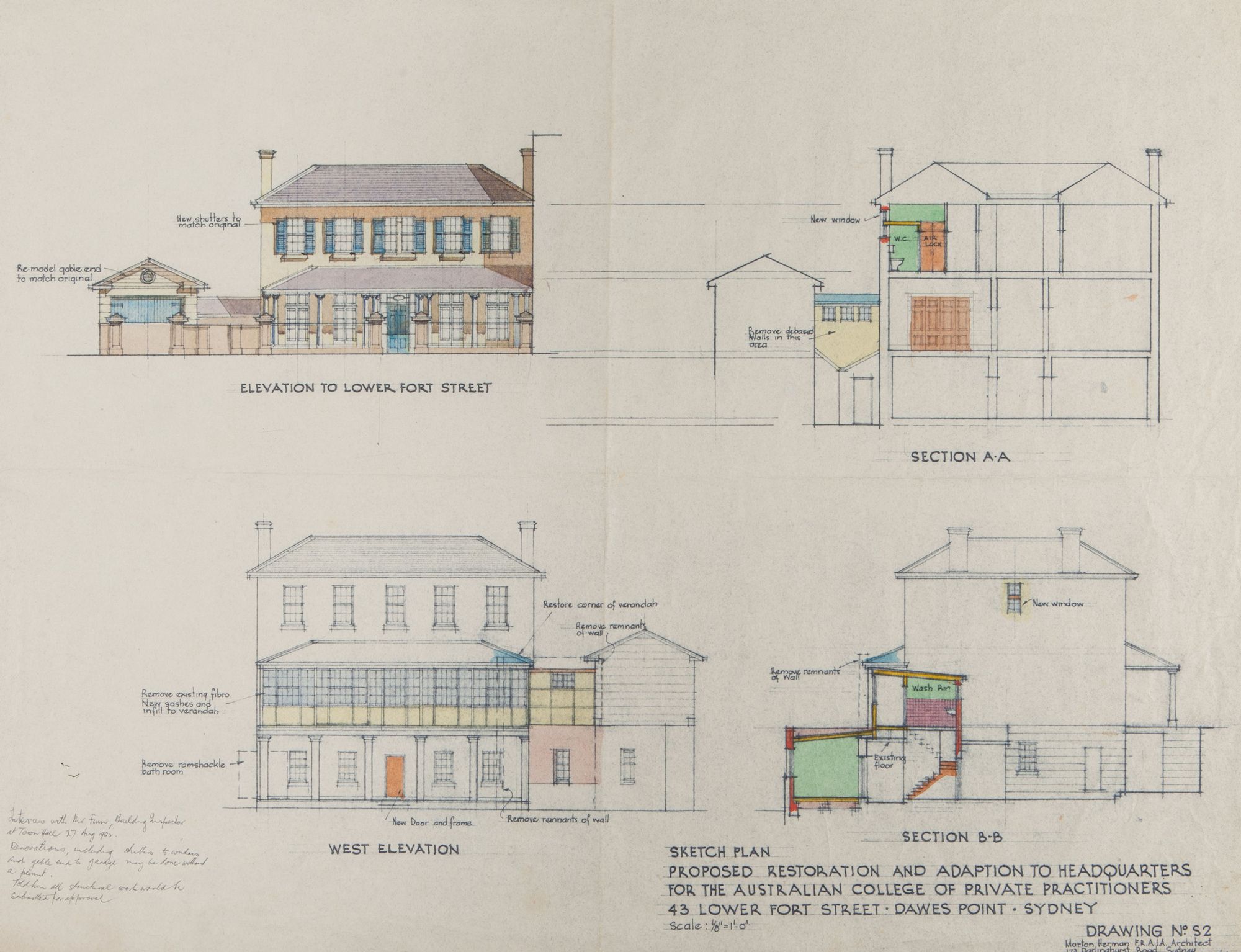 This collection of sketches and drawings by architect, historian and author Morton Herman dates from 1952 to 1978. It includes drawings and sketches of colonial buildings, churches and residences, and restoration work to historic bridges