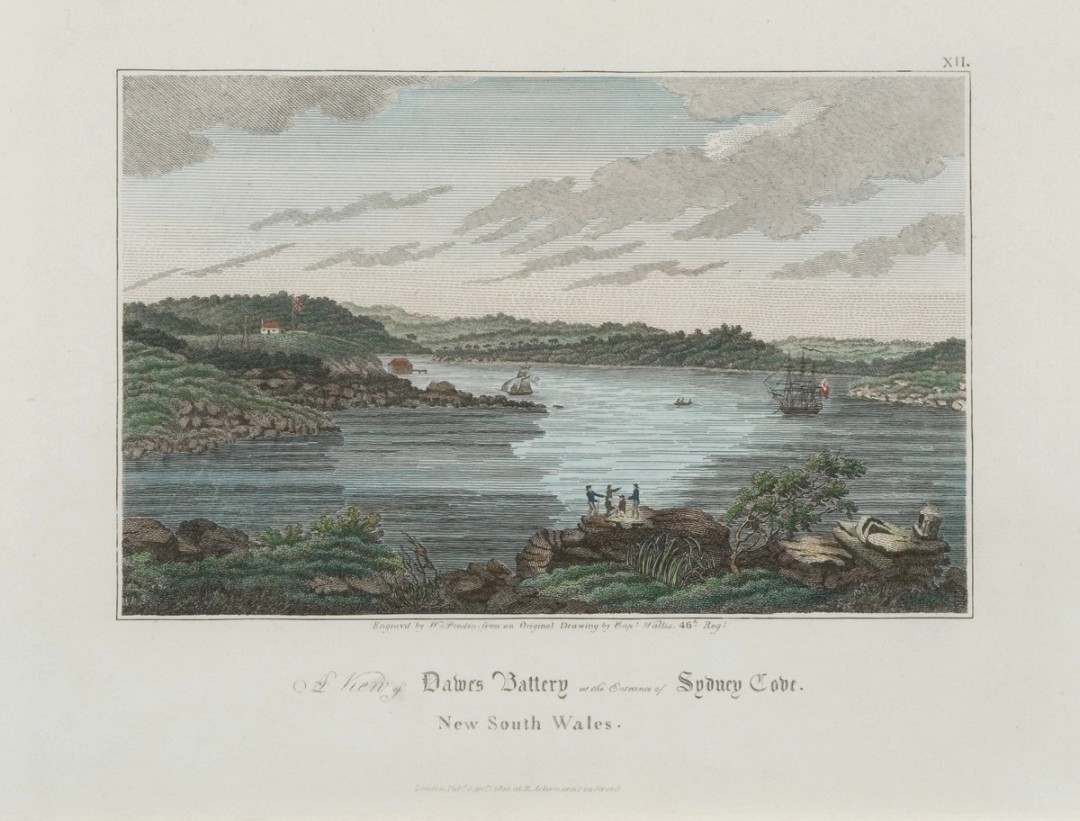 Following songlines through Country leads to sites of learning and spiritual significance where knowledge is stored and can be unlocked. One such sacred place, on the banks of Sydney Harbour, is known by the Aboriginal name Tar-Ra. Aboriginal people visited the large flat rocks that were found here to cook fish.1 The colonists named this place Dawes Point, after Lieutenant William Dawes, who arrived on the First Fleet and built an observatory on the site in April 1788. Here Dawes worked with Patyegarang, a young Aboriginal woman, and others to compile a record of Aboriginal words and phrases, which has been used by modern linguists to create a dictionary of the Sydney languages.
