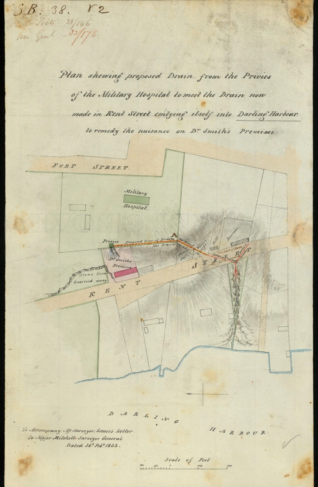 The British colonists’ use of land often resulted in environmental damage and disrupted First Nations ecological management of Country. This 1833 map shows plans to drain waste directly into Darling Harbour. There had been some attempts to protect the environment in the early colonial era, including Governor John Hunter’s order in 1795 forbidding further pollution of the Tank Stream – the colonists’ main freshwater supply. Hunter’s proclamation was one of the first environmental protection measures enacted by the colonists, but it was ultimately unsuccessful and waste continued to be discharged into the stream.6 The motivation behind some governmental environmental restrictions was not preservation for its own sake, but to protect the minimum level of resources necessary for the survival of the fledgling colony.7 Particularly in the case of native trees, preservation was deemed necessary to ensure a steady supply of shipbuilding timber to service Britain’s enormous maritime empire, rather than to maintain ecological balance. The government sought to control and profit from these valuable resources and prevent ambitious settlers from lining their pockets through private sales.