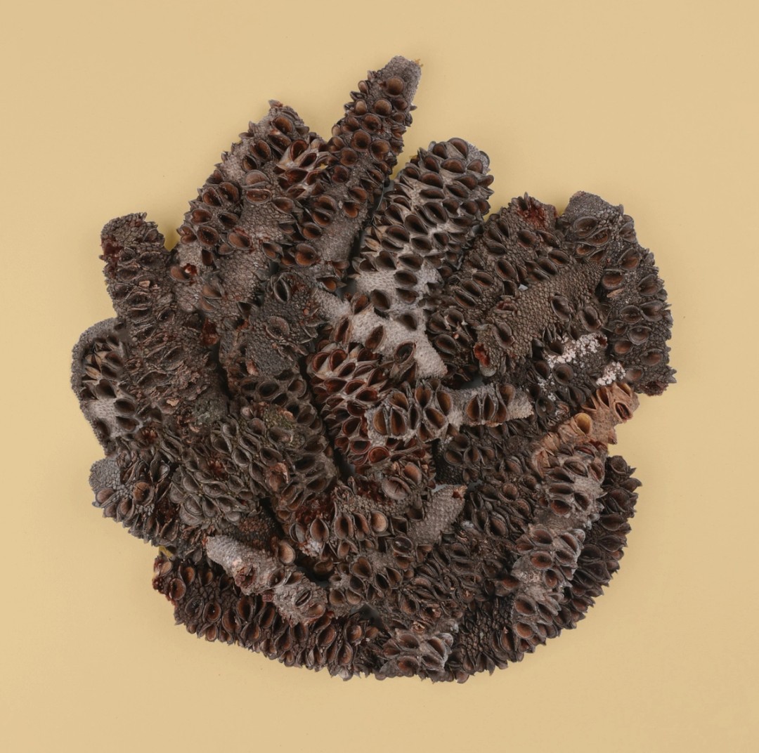 The guriidja (coastal banksia) is one of many native plants about which Aboriginal people in Sydney have recorded information in the Library of the Dreaming. The guriidja has various uses, including as food, medicine and in toolmaking, but one of its most important uses was in firestick farming. The cone shape of guriidja was perfect for use as a firestick, and like many Australian native plants it also requires fire itself in order to propagate. The propagation and renewal of plant species were carefully managed by Aboriginal people. The sandstone escarpments found in coastal Sydney, for example, were used as platforms to burn hot fires in early summer to open seeds, pods and legumes for planting.11 In 2020, Dharawal researcher Dr Shane Ingrey compiled an interactive guide to Dharawal plant use for the National Museum of Australia, bringing this long-held knowledge to life for modern audiences.12