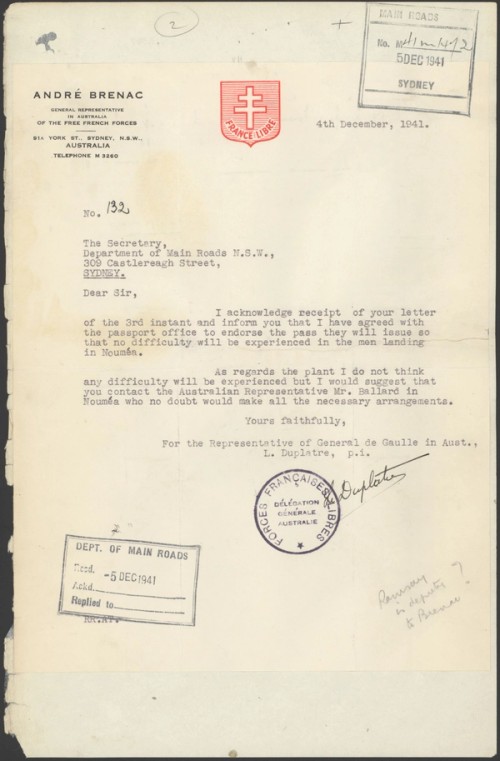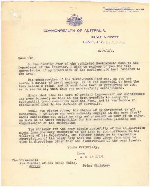 From 1940 to 1943 the Australian Government co-opted the road construction authorities of the state governments to build roads, airfields and other defence works and infrastructure in the Northern Territory. One of these co-opted organisations was the NSW Department of Main Roads. By 1943 the Department had built airfields at both Norfolk Island and New Caledonia and helped the Main Roads Commission of Queensland to build the Ipswich to Charters Towers Inland Defence road. The men who volunteered to work on these projects came from within the Department and from other sections of state and local government.
