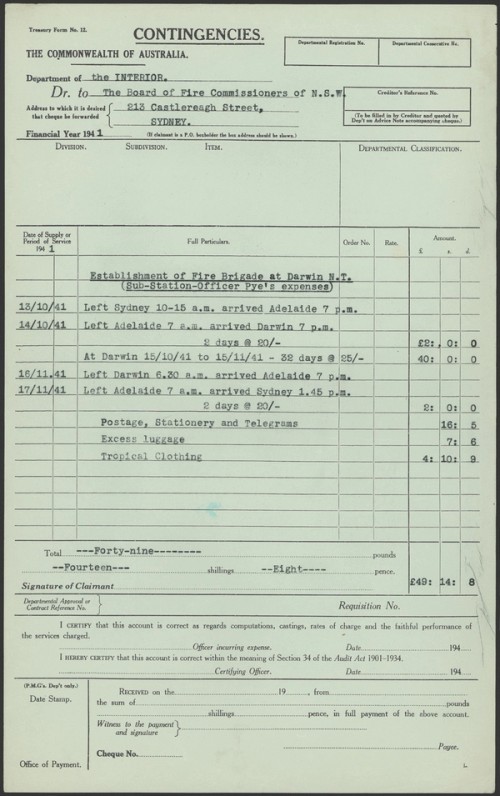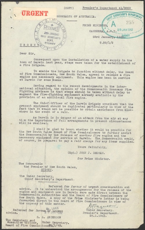 - NAA RecordSearch – NAA:A431, 1948/215, Fire Brigade Darwin N.T. Establishment of, 1938-50