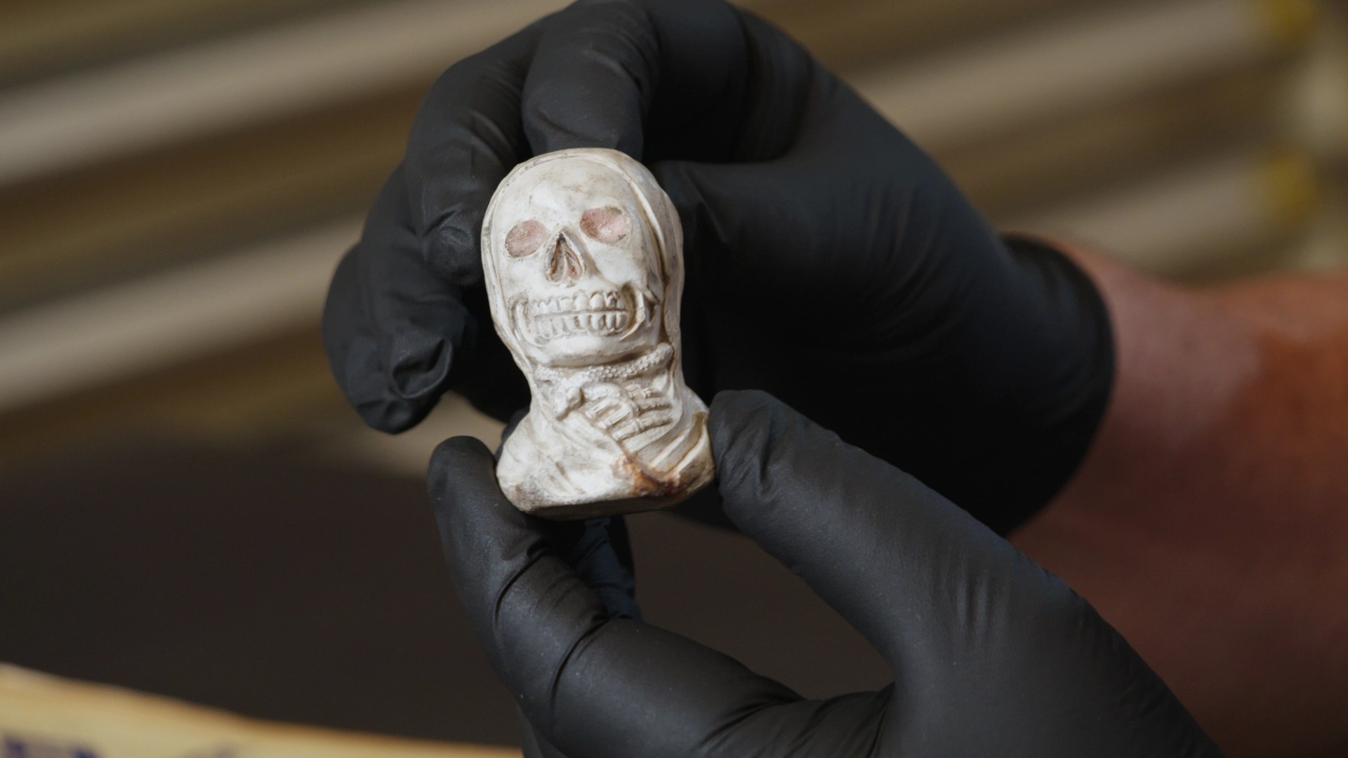 Archaeologist Denis Gojak shares the excitement of finding this spectacular pipe bowl in the shape of a skull at the site of the first Government House.